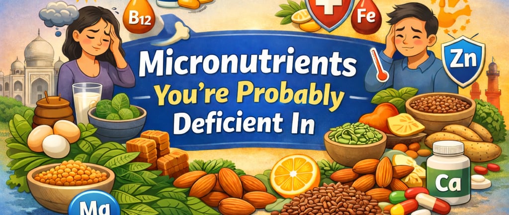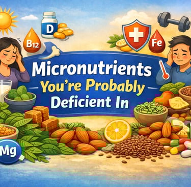 Micronutrient deficiencies are common in India despite diverse diets, largely due to lifestyle habits and food choices. Key nutrients like Vitamin B12, Vitamin D, iron, calcium, magnesium, zinc, and omega-3 fatty acids are often lacking, leading to fatigue, weak immunity, and poor overall health. Simple changes—like eating a varied diet, adding nuts and seeds, improving sunlight exposure, and timing meals wisely—can help bridge these gaps and significantly improve long-term well-being.